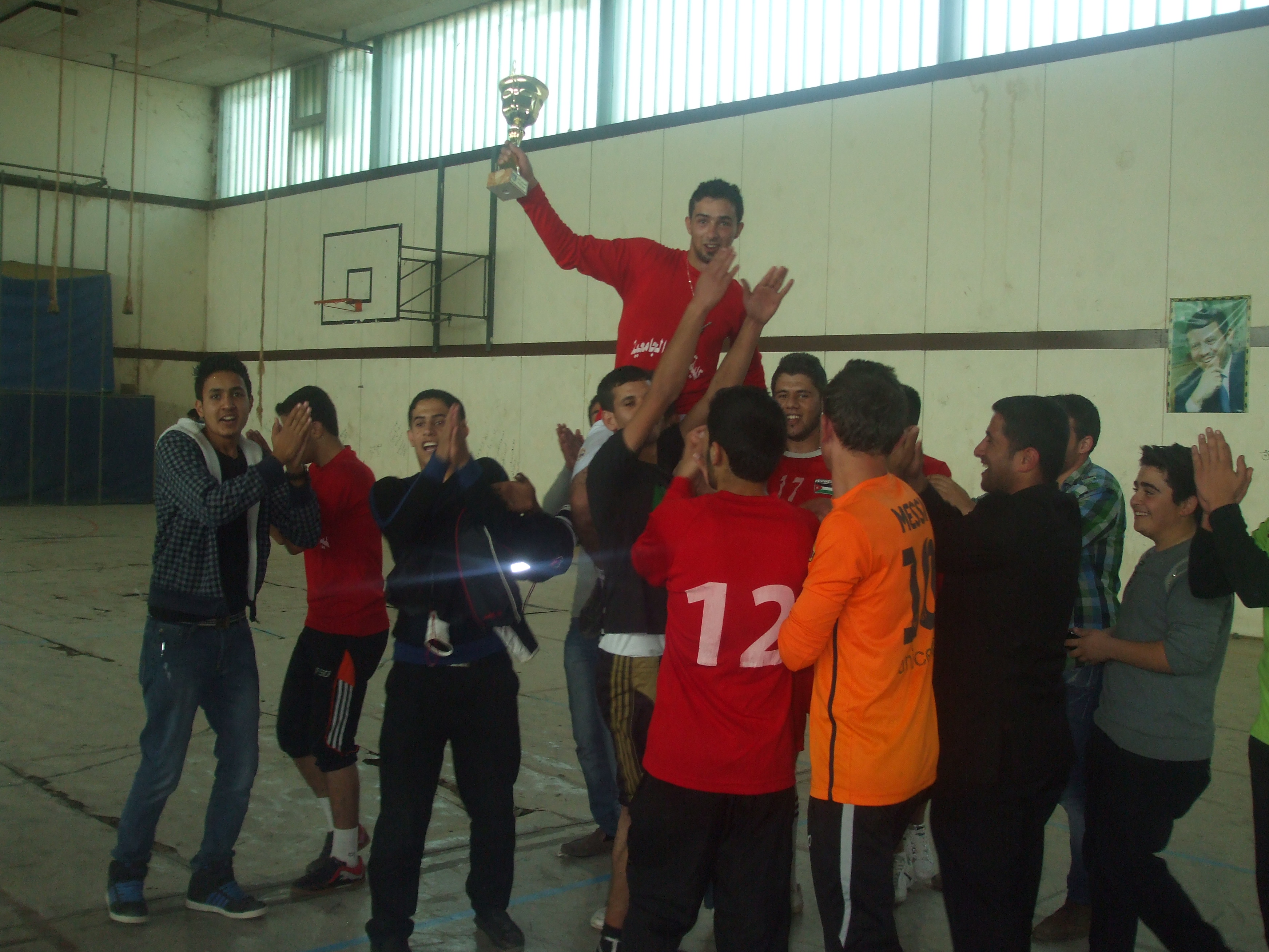 توج الدكتور علي القضاة عميد كلية عجلون الجامعية فريق تخصص الرياضيات بطلا لدوري خماسي كرة القدم في اللقاء الختامي لبطولة دوري التخصصات لكلية عجلون الجامعية بعد فوزه الساحق على فريق تخصص علم الحاسوب بنتيجة 5/4 في مباراته التي جرت على ملعب الصالة الرياضية داخل حرم الكلية بتنظيم من قسم النشاطات .