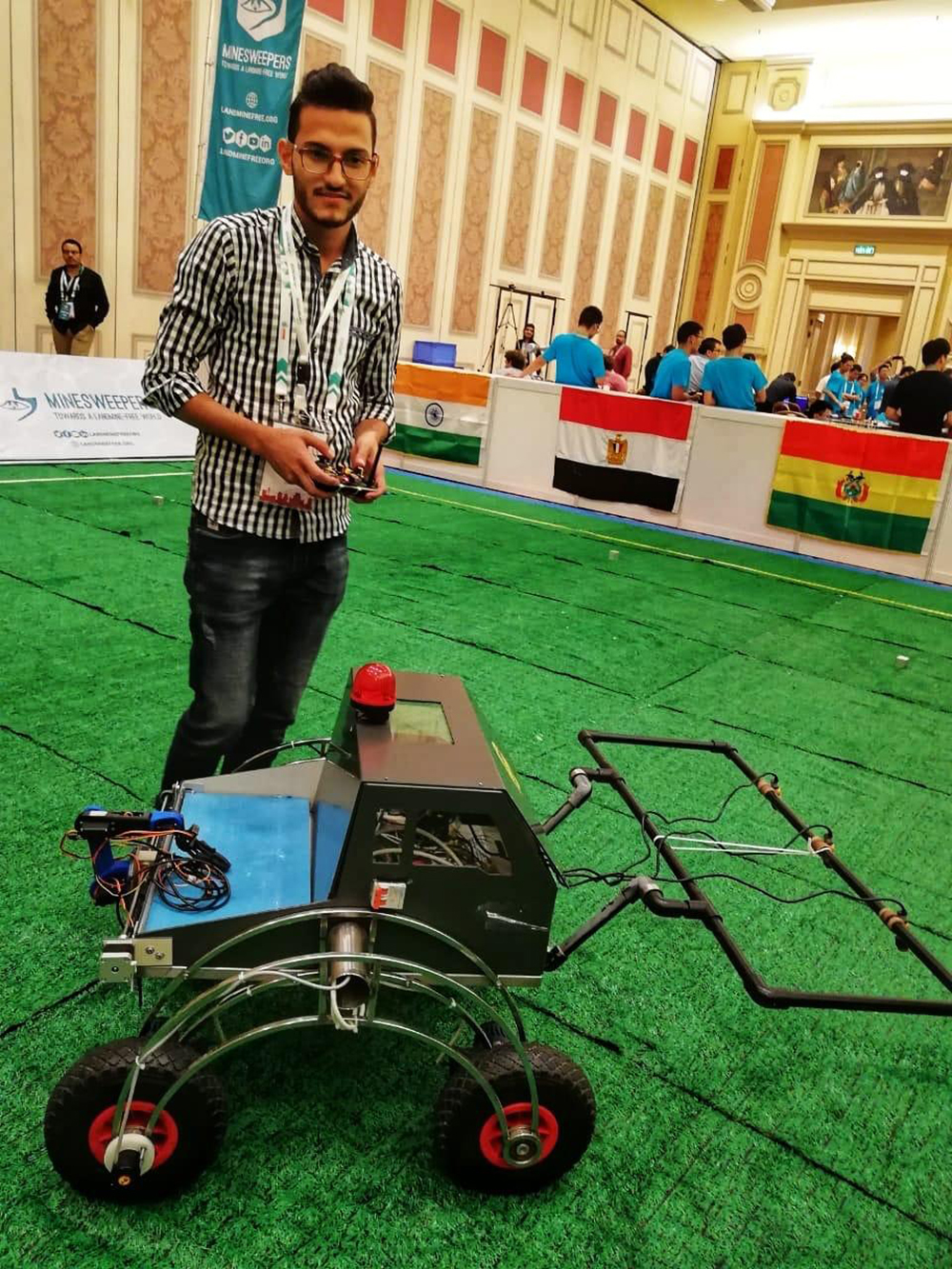 شارك مجموعة من طلاب الفرع الطلابي IEEE في جامعة البلقاء البلقاء التطبيقية في المسابقة العالمية ( Minesweeper ) التي أقيمت هذا العام في ( ماكاو - الصين ) و تهدف هذه المسابقة إلى رفع مستوى الوعي العام بخطورة الألغام الأرضية ، وتشجيع أبحاث الروبوتات وتطبيقاتها في مجال إزالة الألغام للأغراض الإنسانية في العالم. وقد أطلقت هذه المسابقة لأول مرة في 2012 ، و حصل فريق جامعة البلقاء التطبيقية على جائزة أفضل ? فرق في المسابقة في العالم و كُرِم الفريق بجائزة افضل فريق مشارك ( best team spirit ) على مستوى العالم .