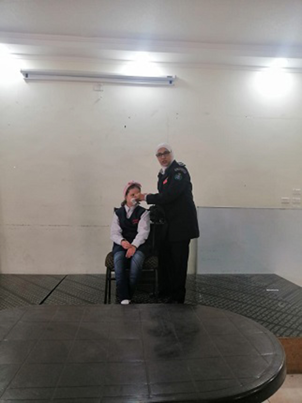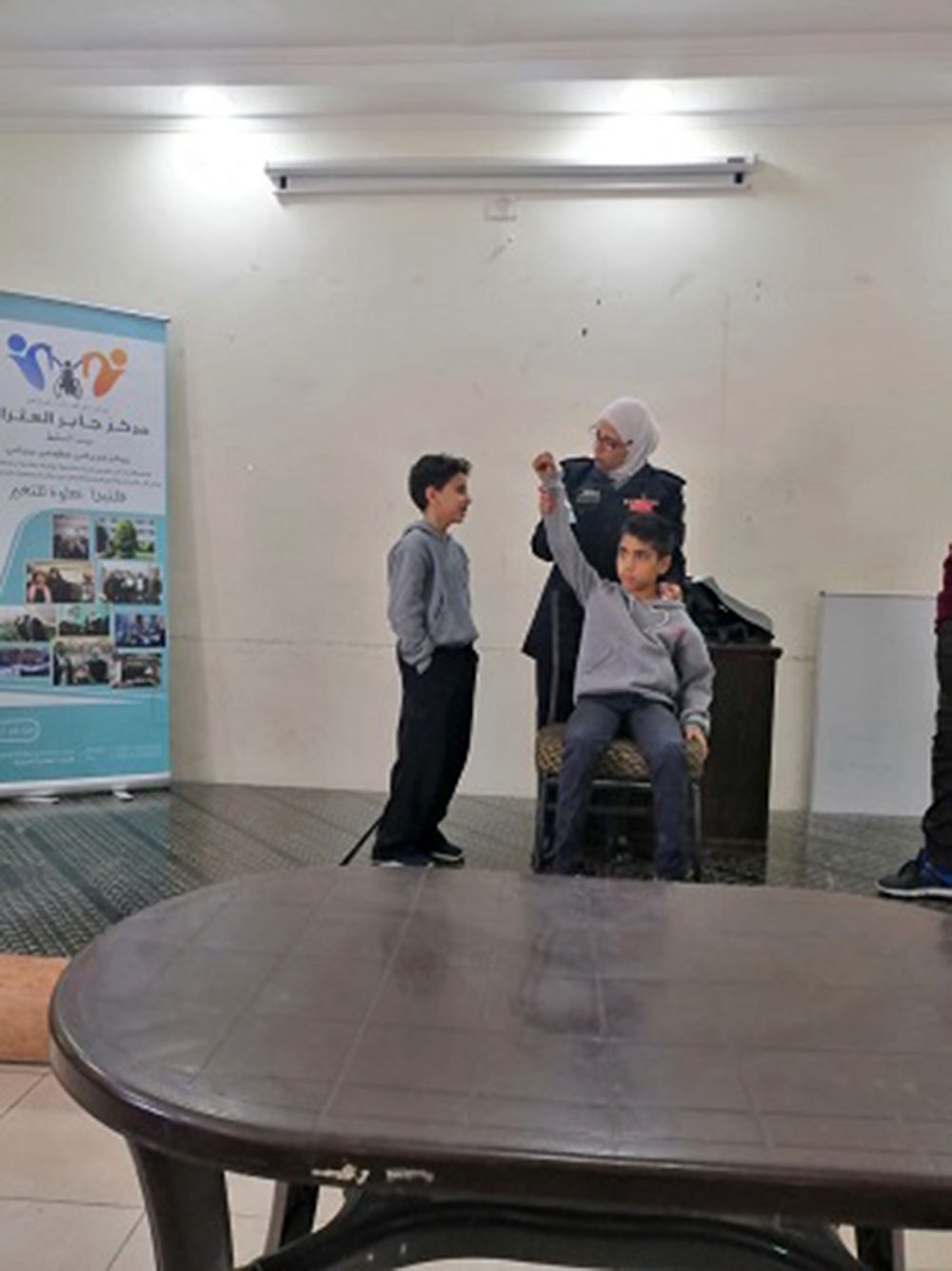 اقامت وحدة التنميه وخدمة المجتمع المحلي وبالتعاون مع مديرية الدفاع المدني دوره تدريبيه لطالبات مدارس الفرسان/السلط عن الاسعافات الاوليه والسلامة العامة حيث شملت كيفية التعامل مع حالات بلع اللسان والاغماء.