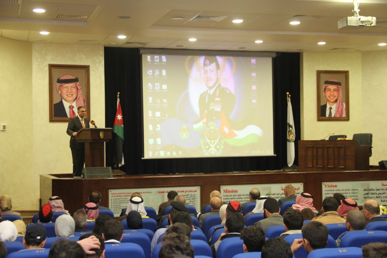 نظمت وحدة التنمية وخدمة المجتمع المحلي في جامعة البلقاء التطبيقية وبالتعاون مع مديرية الأمن العام ممثلة بالمعهد المروري الأردني اليوم الثلاثاء ندوة بعنوان " الحوادث المرورية أسبابها ونتائجها على المجتمع " ضمن حملة" كفى لنزيف الطرقات" واستمرارا لمبادرة "أردن النخوة" لتحقيق الأمن والسلامة المرورية والحد من المشكلات والحوادث المرورية بحضور رئيس جامعة البلقاء التطبيقية الاستاذ الدكتور عبدالله سرور الزعبي و مساعد مدير الأمن العام لشؤون المرور العميد زياد باكير وعدد من مدراء الإدارات والوحدات المرورية والشرطية، والاساتذة نواب رئيس الجامعة ومساعد رئيس الجامعة لشؤون خدمة المجتمع مدير وحدة التنمية وخدمة المجتمع المحلي وعمداء الكليات وعدد من المتقاعدين العسكريين ووجهاء وأعضاء مجالس المجتمع المحلي والطلبة.