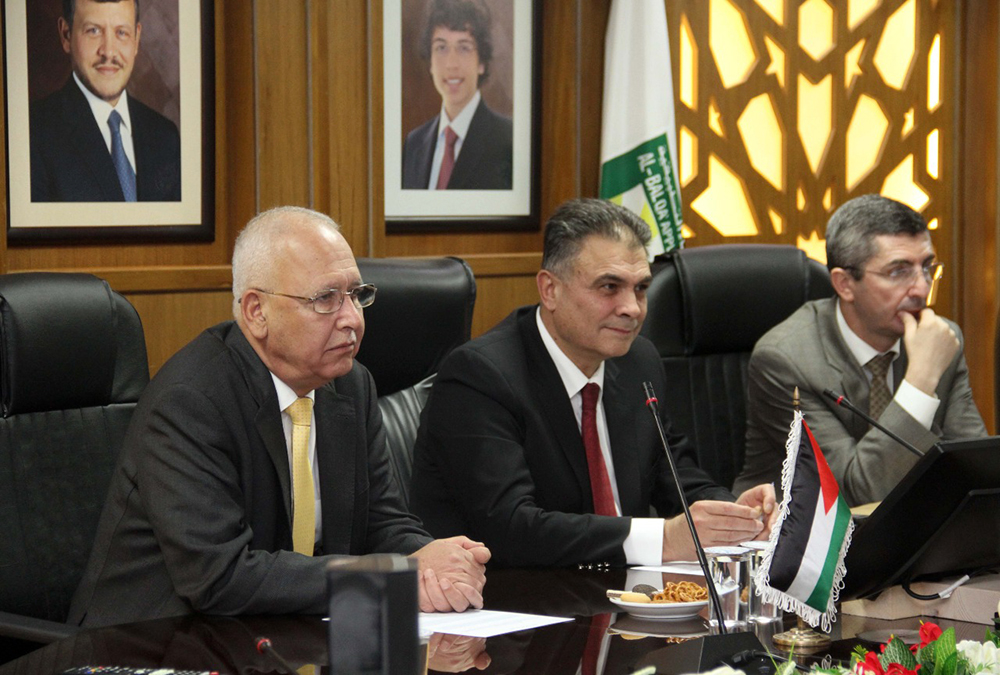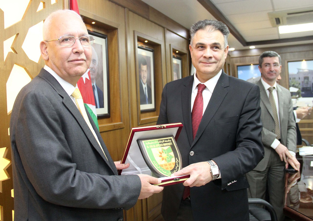 استقبل الأستاذ الدكتور عبدالله سرور الزعبي رئيس جامعة البلقاء التطبيقية في مكتبه نقيب المهندسين المهندس احمد سماره الزعبي يرافقه الأمين العام لنقابة المهندسين المهندس محمد أبو عفيفة والمهندس مروان الحديدي رئيس فرع البلقاء والأستاذ الدكتور ناصر الكلوب عضو مجلس فرع البلقاء بحضور الأساتذة نواب رئيس الجامعة وعميد كلية الهندسة في الجامعة.