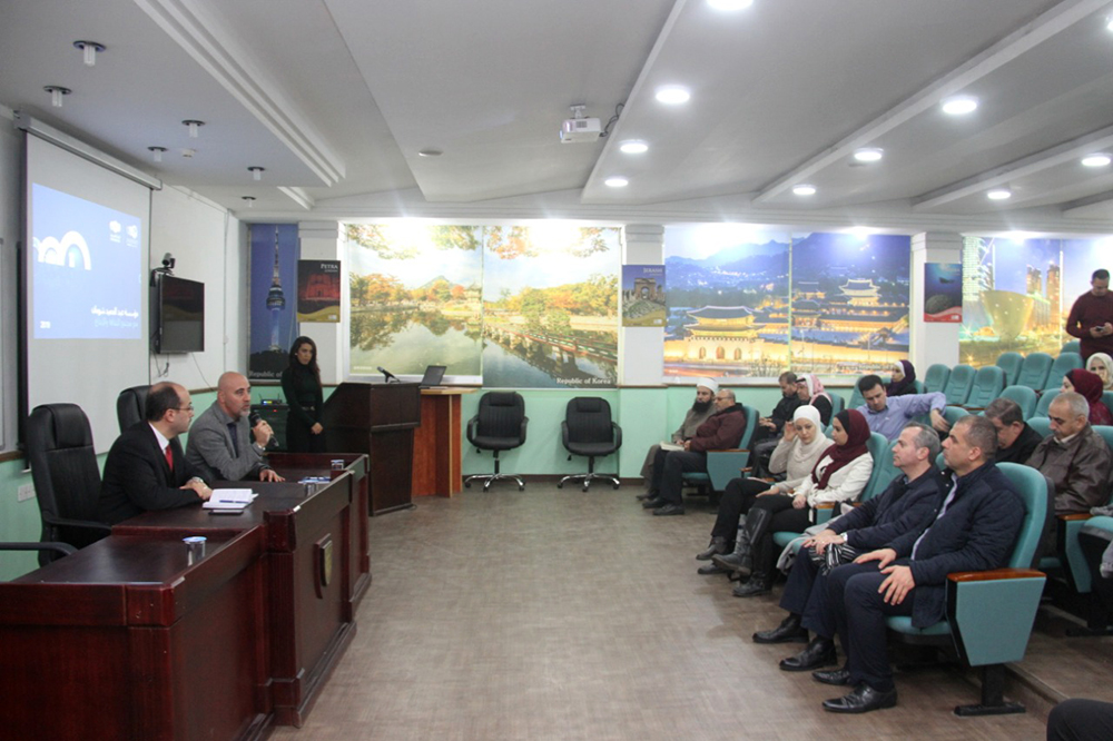 نظمت عمادة البحث العلمي في جامعة البلقاء التطبيقية محاضرة تعريفية حول دعم البحث العلمي والجوائز المقدمة من مؤسسة عبد الحميد شومان بحضور الاستاذ الدكتور سعيد ابو رمان عميد البحث العلمي وعدد من اعضاء الهيئة التدريسية وذلك على مسرح المركز الاردني الكوري للمعلومات وتكنولوجيا الاتصالات في الجامعة.