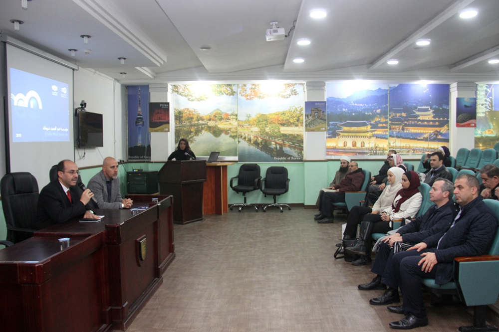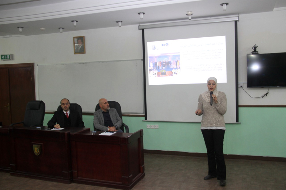 وتحدث في المحاضرة كل من السيد انور الحلح وسحر الاسمر وعبير عيسى والاء الشرمان من مؤسسة عبدالحميد شومان عن صندوق دعم البحث العلمي التابع للمؤسسة والية التقدم لدعم المشاريع البحثية. هذا واكد السيد الحلح على اهمية المشاريع العلمية التطبيقية ذات القيمة المضافة والتي تلبي احتياجات المجتمع الاردني. اما بخصوص الجوائز المقدمة من المؤسسة، فقد تم استعراض اهمية والية التقدم لجائزة عبدالحميد شومان للباحثين العرب وجائزة عبدالحميد شومان للابتكار.