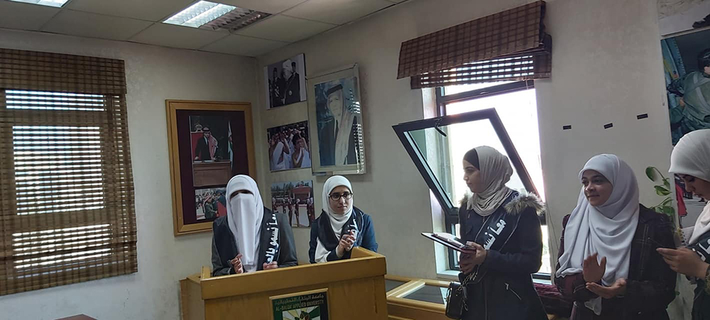 بمناسبة اليوم العالمي للغة العربية والذي يصادف الثامن العاشر من كانون الأول من كل عام نظمت كلية الأميرة عالية الجامعية وبالتعاون مع اللجنة الثقافية والجمعية العلمية الطلابية فعالية بعنوان (معًا باللغة العربية نسمو) بحضور عميد الكلية الأستاذ الدكتور بشار تليلان السليّم وعدد من أعضاء الهيئة الأكاديمية والطالبات .