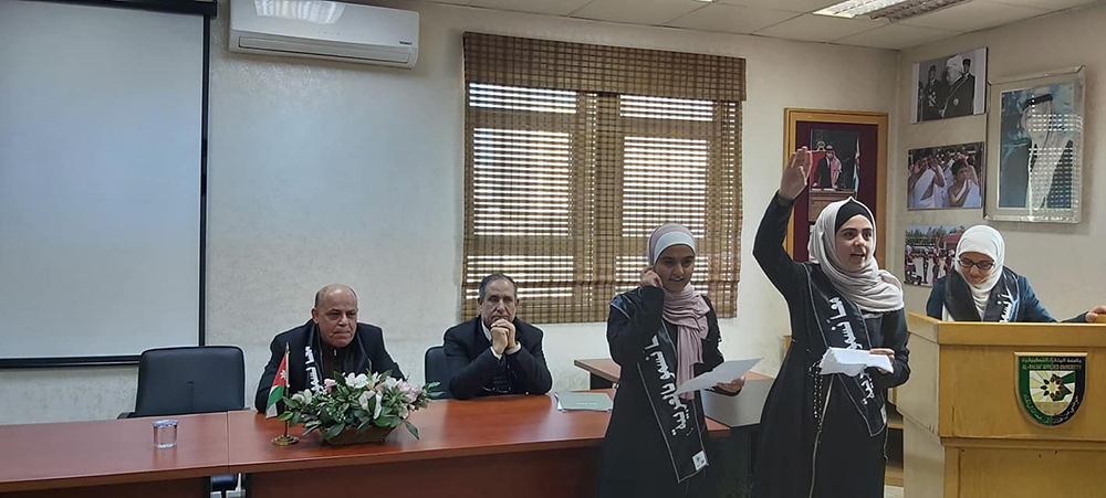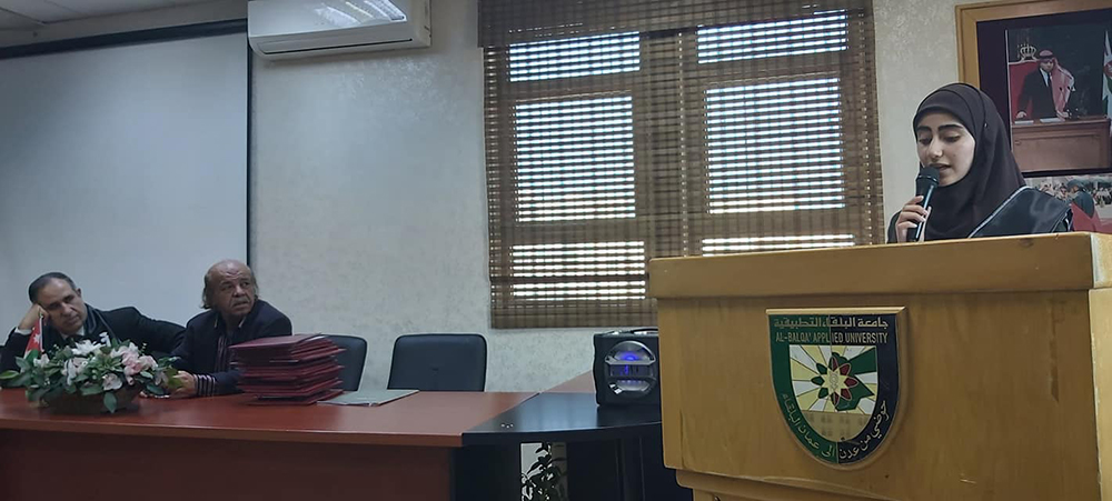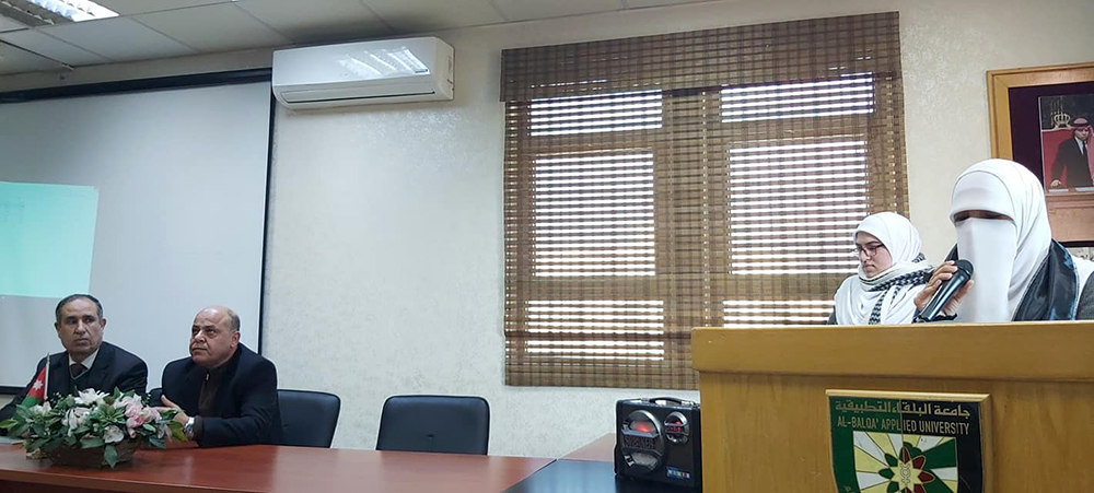 حيث بدأت الفعالية بكلمة اعتزاز لعميد الكلية باللغة العربية لغة القرآن الكريم والتراث مما يتوجب علينا صونها و الحفاظ عليها والدفاع عنها واستعمالها اكثر في حياتنا اليومية رغم الصعوبة التي قد نواجهها. كما وشكر اللجنة الثقافية ممثلة بالأستاذ الدكتور عماد الضمور والأستاذ الدكتورراشد العيسى والأستاذ الدكتور نضال الشمالي.