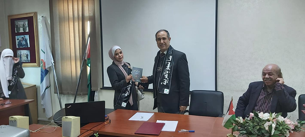 وإهداء الطالبة لجين السريسي لكتاب (بين الصدفين ) لرئيس قسم اللغة العربية الدكتور جمال العريني