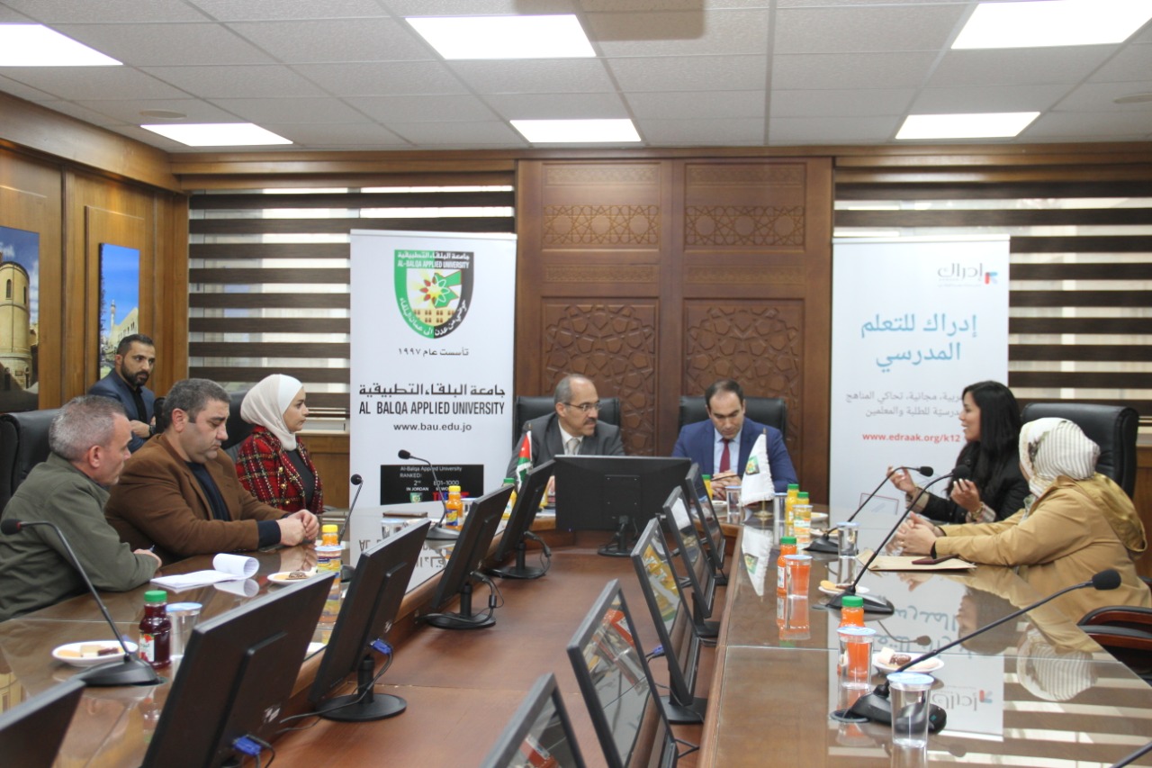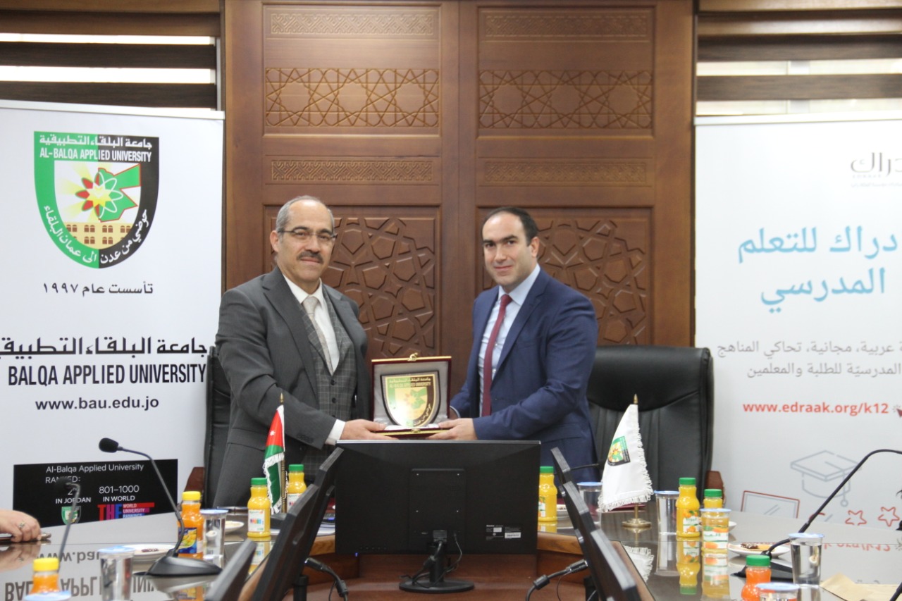 السيد باسم نظير قال ان مؤسسة إدراك للتنمية والتدريب منصة عربية غير ربحية تقدم مساقات الكترونية أكاديمية تم تأسيسها بمبادرة من مؤسسة الملكة رانيا للتعليم والتنمية، مؤكدا اعتزاز المؤسسة بالمستوى المتقدم الذي وصلت اليه جامعة البلقاء التطبيقية وخاصة في الآونة الأخيرة التي استطاعت من خلالها دخول نادي أفضل 1000 جامعة على مستوى العلم حسب تصنيف التايمز مشيدا بالجهود الكبيرة التي يبذلها أعضاء هيئة التدريس في البحث العلمي الأمر الذي يحقق سمعة عالمية لمؤسسات التعليم العالي الأردنية .