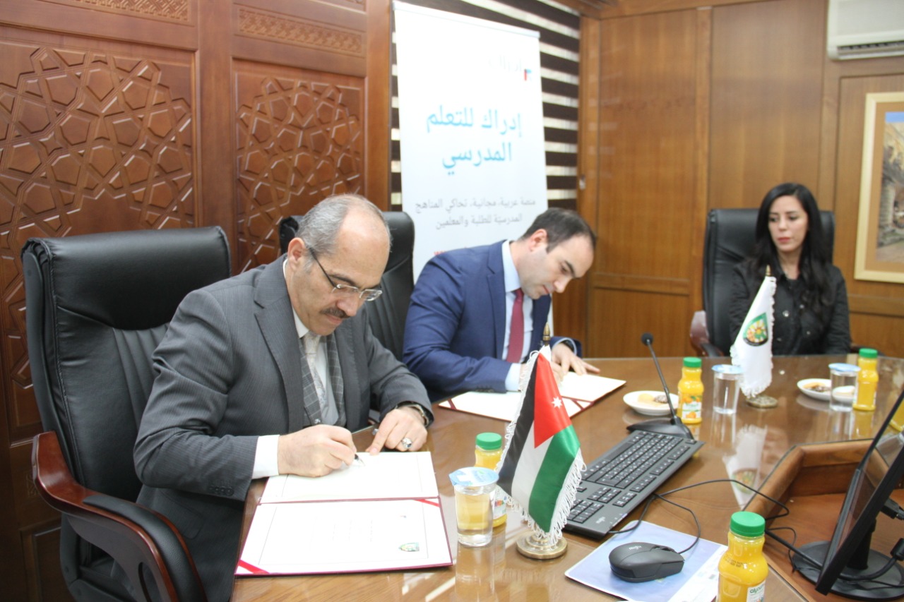 وتهدف مذكرة التفاهم إلى تنفيذ شراكة إستراتيجية لغايات التعاون في عدة مجالات تعليمية تشمل تطوير مساقات تعليمية الكترونية مشتركة بالإضافة إلى التعريف بمنصة إدراك التعليمية .