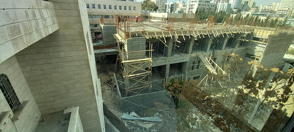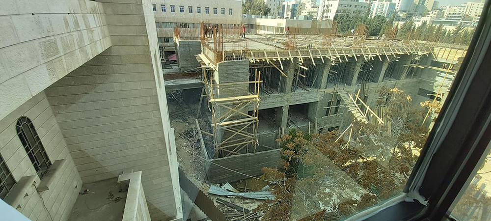 تفقد عميد كلية الأميرة عالية الجامعية الأستاذ الدكتور بشار تليلان السليّم سير العمل في مشروع البنية التحتية للمبنى الجديد والمرحلة الجديدة التي وصلت نسبه الانجاز فيه 28 % من المشروع والتي من المتوقع افتتاحه نهاية شهر تشرين الأول للعام الحالي حيث يشتمل المشروع المكون من خمسة طوابق وبمساحة (4955)م2 على مسرح بمساحة (400)م2 و(12) قاعة صفية بسعة (48) مقعدًا دراسي لكل قاعة و(6) مختبرات حاسوب و(15) مكتبًا وغرفة اجتماعات.