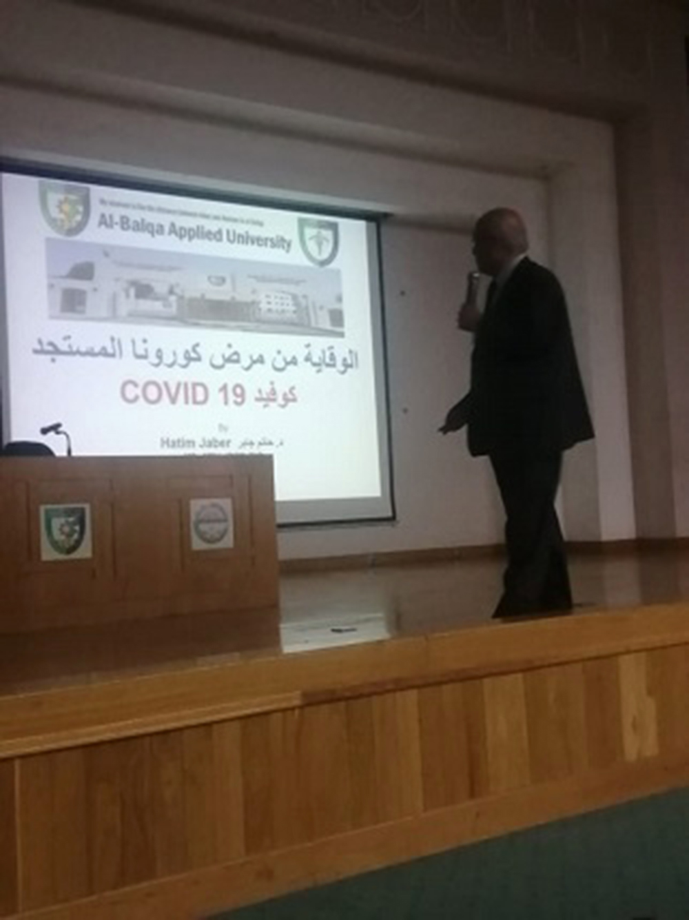 اقيمت في كلية الهندسة التكنولوجية / مركز الاميره جنه الثقافي محاضرة عن مرض الكورونا القاها الدكتور حاتم جابر استشاري الطب الوقائي والاستاذ المساعد في كلية الطب في جامعة البلقاء التطبيقية بحضور نائب العميد للشؤون الاكاديمية وعدد من اعضاء الهيئتين التدريسية والادارية وجمع من طلبة الكلية .