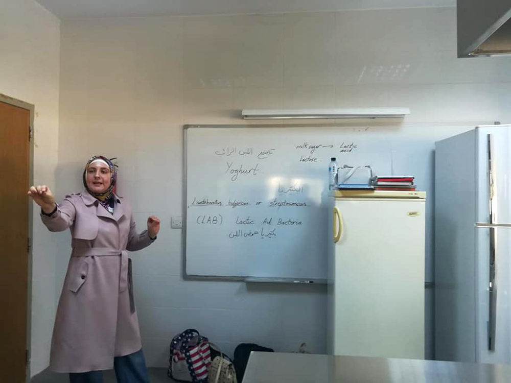حيث بدأت الورشة بتعريف الطالبات بأهمية التصنيع الغذائي وحفظ الطعام والمواد المستخدمة والطرق السليمة للتعامل مع المواد الغذائية، تلاه تطبيق عملي لطرق التصنيع الغذائي التالية: ( التخليل، وإنتاج الأجبان، والألبان، والتعليب)