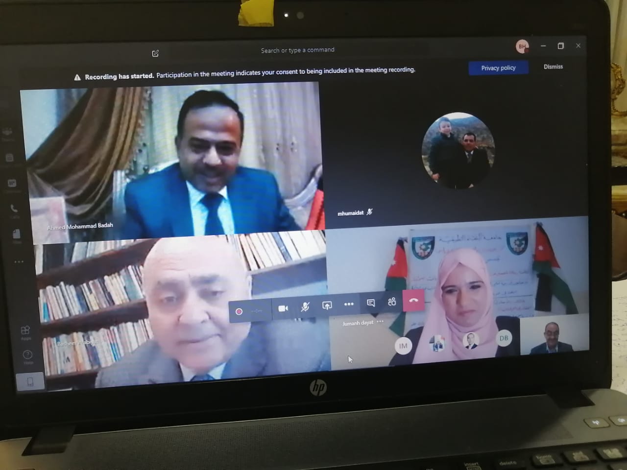 مناقشة اول رسالة ماجستير في جامعة البلقاء التطبيقية وفي قسم العلوم التربوية كلية الأميرة عالية الجامعية من خلال منصة ميكروسوفت تيم عن بعد