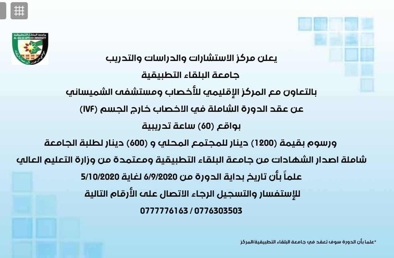اعلان عن الدورة الشامله للاخصاب خارج الجسم IVF