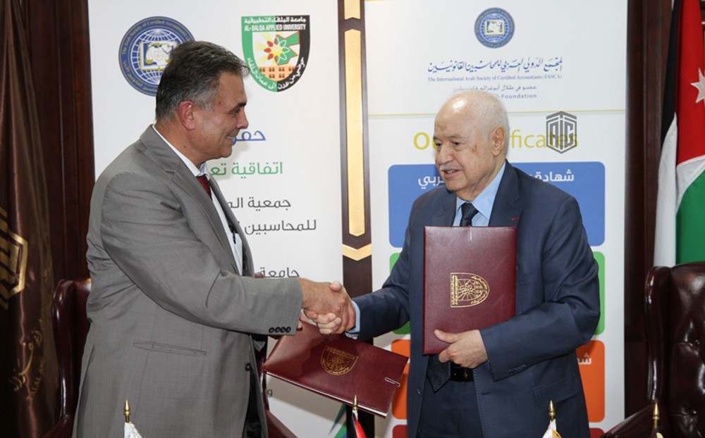 عمان – وقعت جمعية المجمع العربي للمحاسبين القانونيين مع جامعة البلقاء التطبيقية اتفاقيـة تعاون في مجال خدمات التدريب والشهادات المهنية المتخصصة.