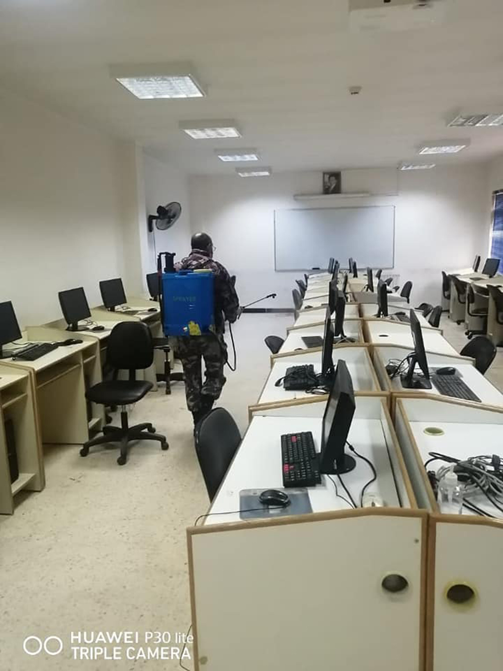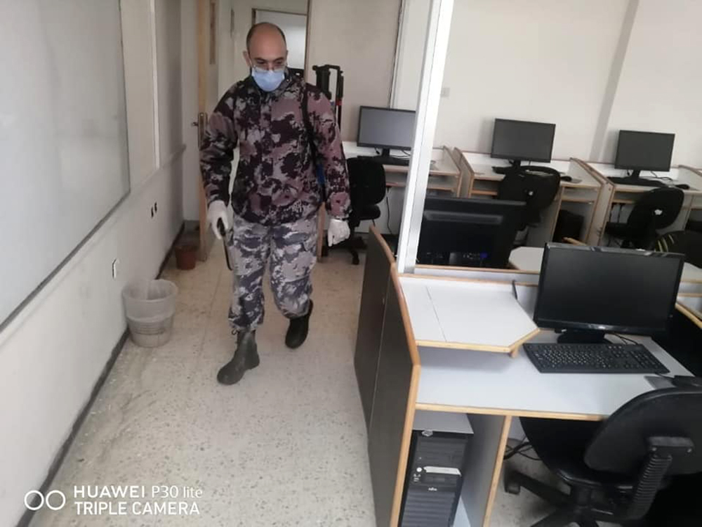 نفذت كلية الاميرة عالية الجامعية بالتعاون  مع مديرية الدفاع المدني / إدارة العمليات حملة تعقيم لكافه مرافق الكلية حيث شملت الحملة ممرات وقاعات تدريس ومكاتب ومختبرات ومرافق خدمات ودورات المياه .