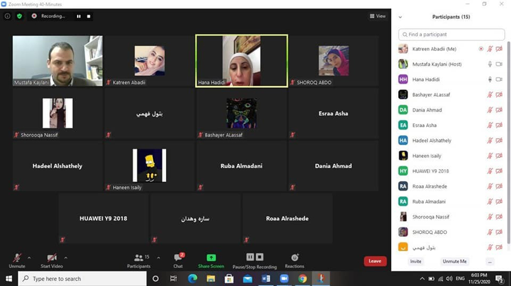 وبالتعاون مع جمعية النساء للتنمية الثقافية عبر تطبيق Zoom دورة تدريبية بعنوان ( دور الأخصائي الاجتماعي في خدمة الجماعة ) لطلبة التدريب الميداني ? إشراف كل من الدكتورة خيرية شنيكات والاستاذة هناء الحديدي كنوع من الشراكة بين الكلية والجمعية تناولت العديد من المحاور