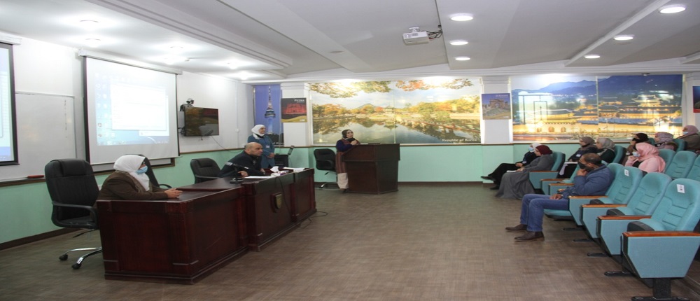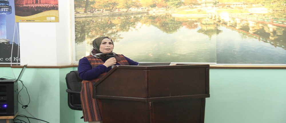 بدورها استعرضت المهندسة ماجدة الحديدي في محاضرتها لأهم المخاطر المحتمله عند التعامل مع المواد الكيميائية نتيجة عدم توفر بيئة عمل سليمة او الاداء الغير صحيح والسليم مع المواد ،كما واستعرضت ايضا اهم انواع الحوادث والإصابات المتوقعة والإسعافات الاولية عند حدوث حادثة في المختبر .