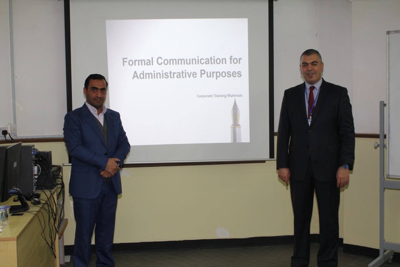 ويحاضر في الدورة رئيس قسم اللغة الإنجليزية في جامعة البلقاء التطبيقية الدكتور عصام الدويكات حيث تشمل على اعطاء المشاركين مهارات الكتابة والمراسلات الرسمية والتواصل مع الجهات الداخلية والخارجية باللغة الانجليزية .