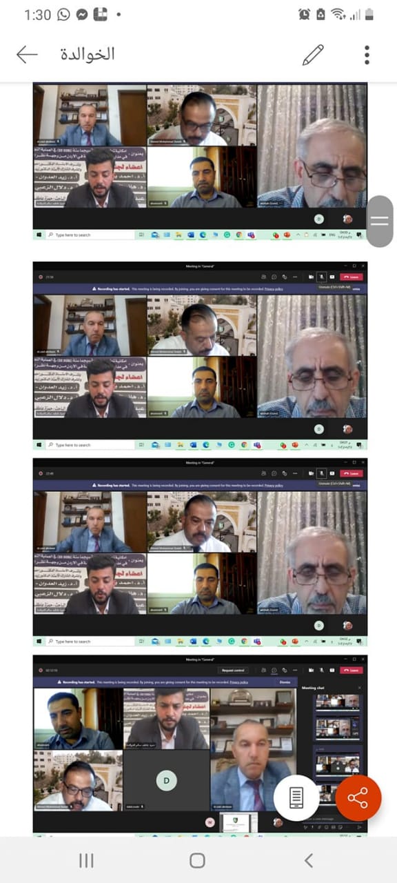 تم في مساء يوم الخميس الموافق 27/5/2021 ، مناقشة رسالة ماجستير عن بعد online للطالب حمزة عاطف الخوالدة تخصص الإدارة التربوية ، قسم العلوم التربوية بعنوان (امكانية تطبيق منهجية سيجما ستة في العملية التعليمية في مدارس لواء الجامعة في الأردن من وجهة نظر المعلمين)