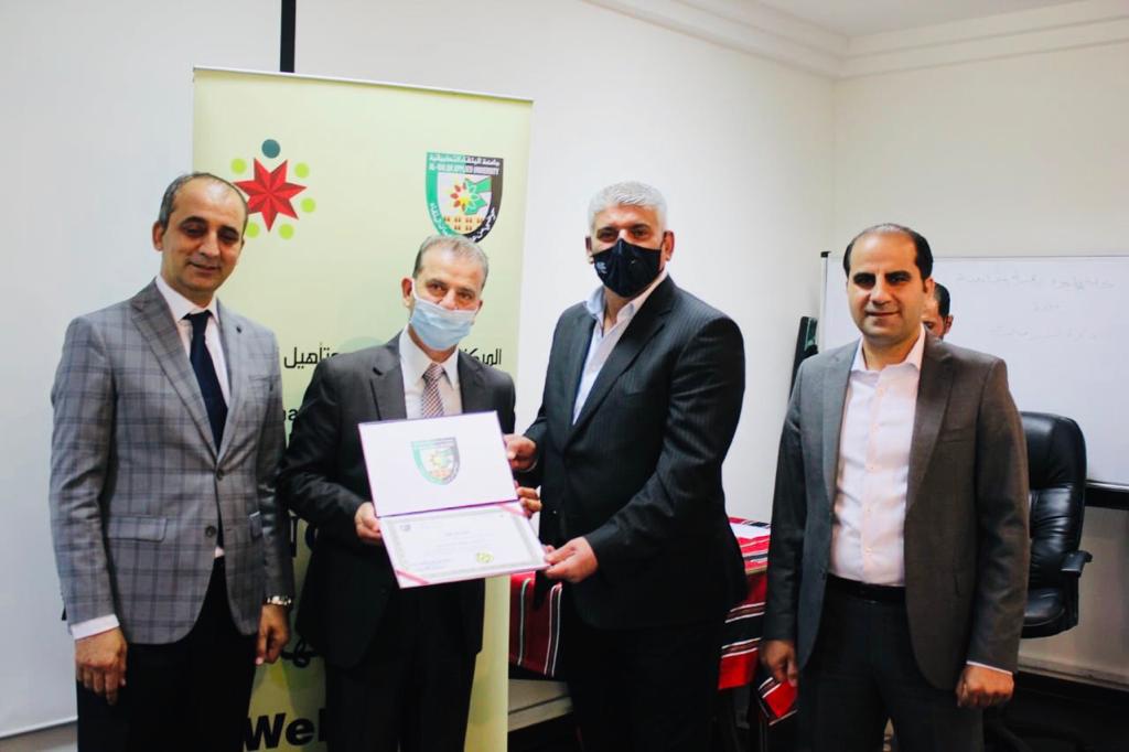 مندوبا عن الاستاذ الدكتور عبدالله سرور الزعبي رئيس جامعة البلقاء التطبيقية رعى الاستاذ الدكتور ناصر كلوب نائب الرئيس لشؤون الكليات اختتام فعليات دورة ادارة الازمات المنعقدة في كلية الاميره رحمه الجامعية بالتعاون مع المركز الوطني للتدريب وتأهيل المدربين.