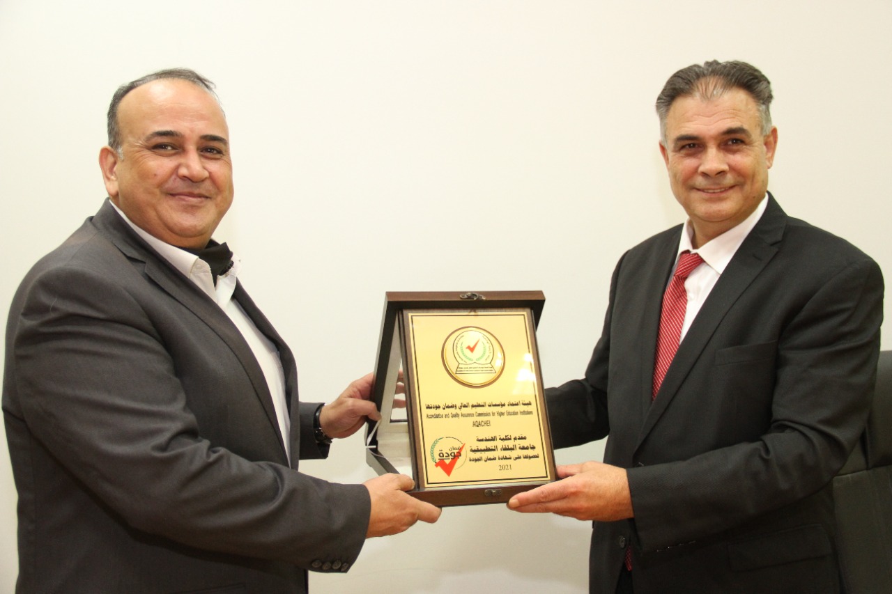 بدوره قال عميد كلية الهندسة الاستاذ الدكتور ماهر قاقيش ان هذا الإنجاز الذي حصلنا عليه جاء بدعم من ادارة الجامعة ممثلة برئيسها الاستاذ الدكتور عبدالله سرور الزعبي المتواصل لنا وخلال السنوات الأخيرة وتجهيز للكلية بأفضل المختبرات العلمية وتحديث البنية التحتية والتكنولوجية وتوفير كافة المتطلبات للكلية ،كما قدم الدكتور قاقيش الشكر لنائب الرئيس الأكاديمي الاستاذ الدكتور سعد ابو قديس واسرة مركز ضمان الجودة ولأعضاء الهيئة التدريسية والإدارية في الكلية وكافة الوحدات والدوائر المساندة على الجهود الكبيرة التي بذلوها لتجهيز كافة الملفات المتعلقة بحصول الكلية على هذه الشهادة.