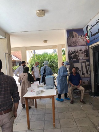 حيث تم أخذ مسحات  من الموظفين إضافة إلى تقديم النصائح والإرشادات الصحية للوقاية من الفيروس .