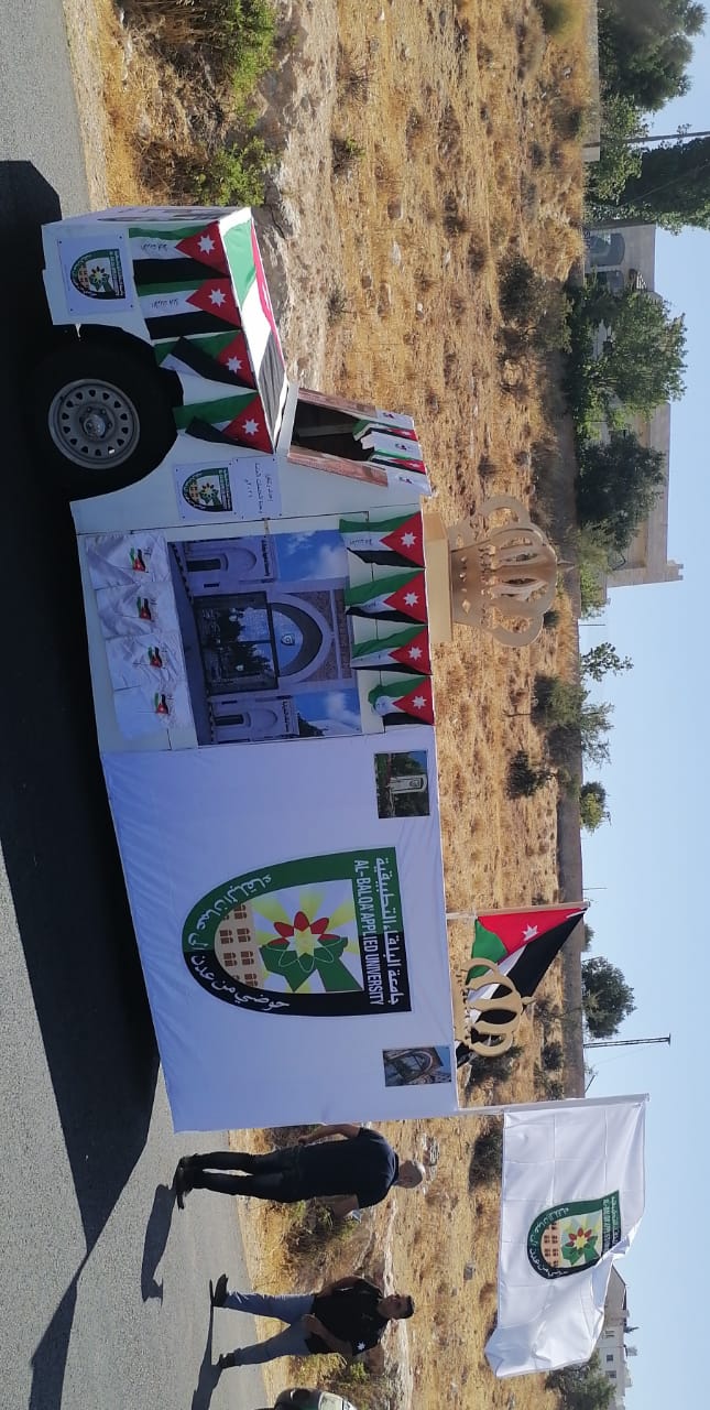 حيث مثل الجامعة في هذه المسيرة الدكتور محمد أبو رمان مدير وحدة الخدمات العامة في الجامعة الذي قال إنه وبتوجيهات من رئيس الجامعة الاستاذ الدكتور عبدالله سرور الزعبي قمنا بتجهيز مركبة بالصور والزينه والتاج الملكي لنشارك في احتفالات كافة المحافظات الأردنية بهذه المناسبة العزيزة لانتشار كليات الجامعة في عموم مناطق اردننا الحبيب.