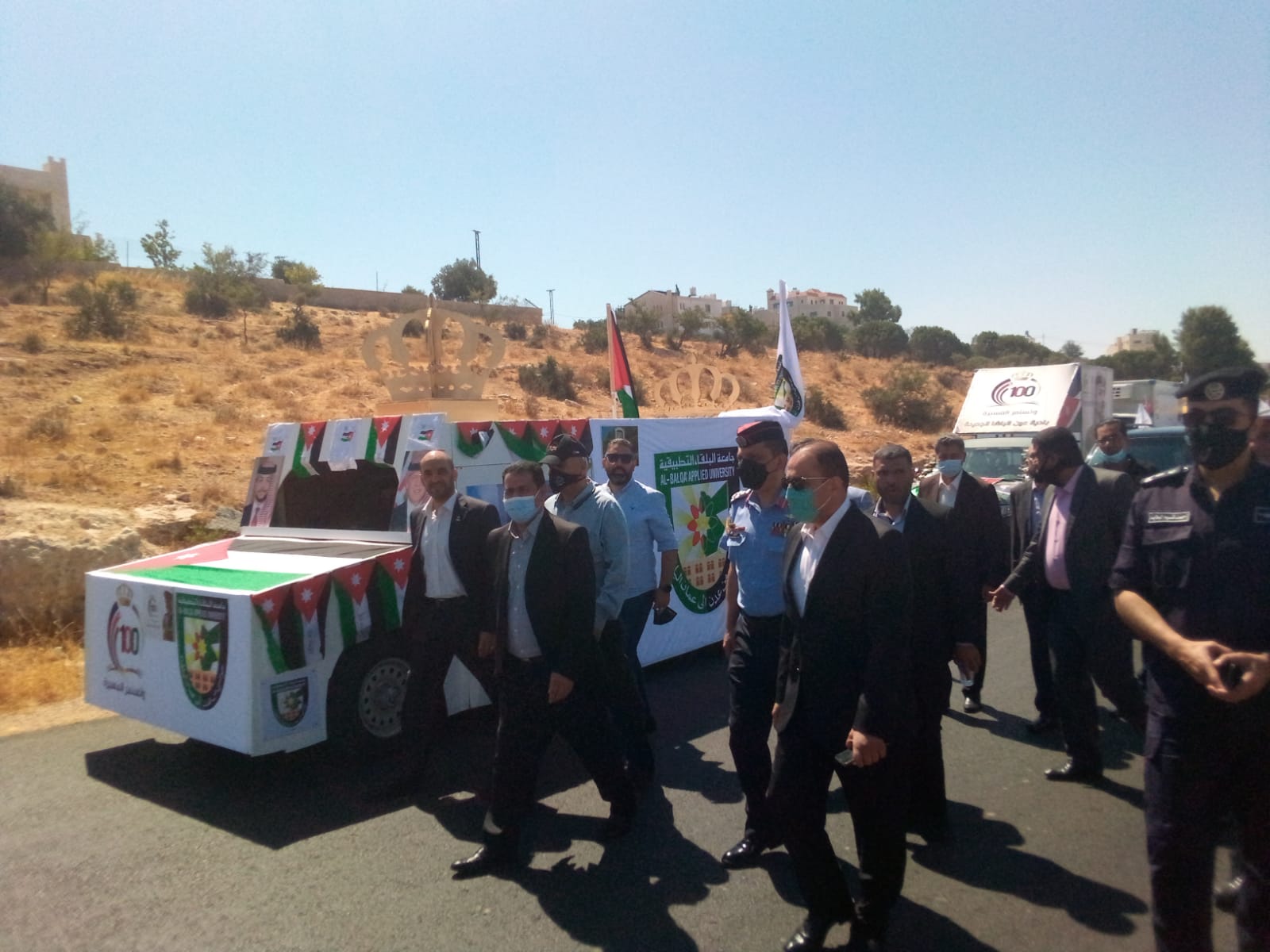 ضمن برنامج احتفالات محافظات المملكة بمئوية الدولة الأردنية انطلقت اليوم في محافظة البلقاء مسيرة احتفالية كبيرة شاركت في جامعة البلقاء التطبيقية بمركبة كرنفالية حملت شعار المئوية وصورا لجلالة الملك المفدى عبدالله الثاني ابن الحسين المعظم وولي عهده وصورا لجامعة البلقاء التطبيقية.
