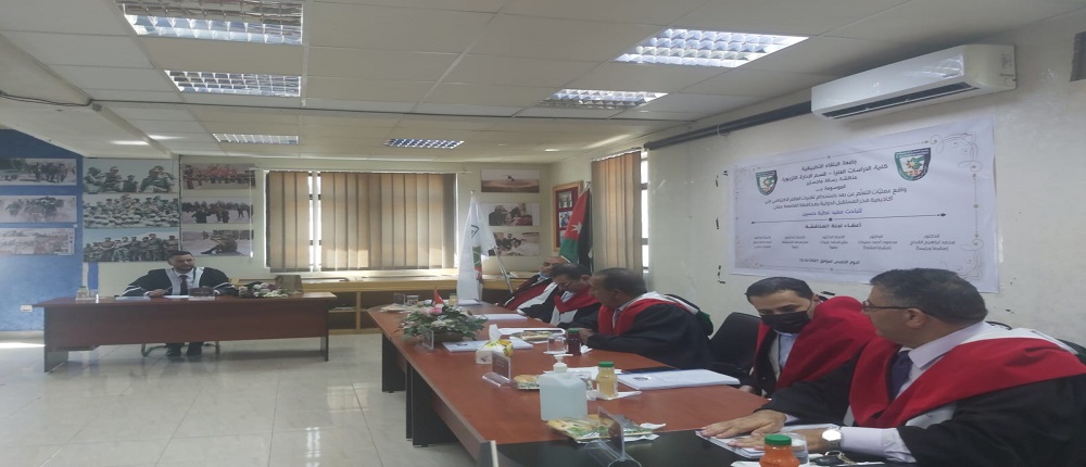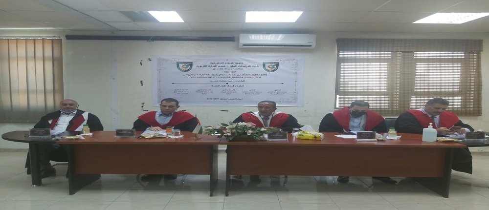 تم في مساء يوم الخميس الموافق 12/8/2021 ، مناقشة رسالة ماجستير للطالب مفيد عطية لطفي حسين تخصص الإدارة التربوية ، قسم العلوم التربوية بعنوان ( واقع عمليات التعلم عن بعد باستخدام تقنيات العالم الافتراضي في أكاديمية فخر المستقبل الدولية بمحافظة العاصمة عمان)