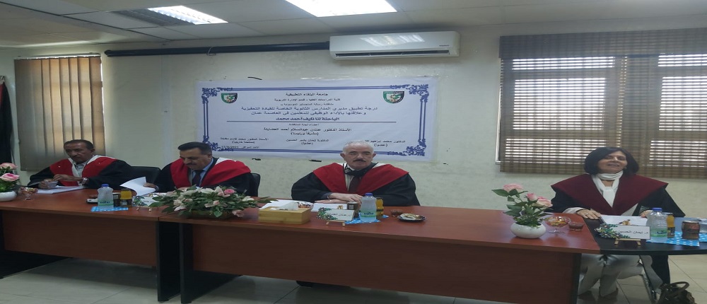 تم في صباح يوم الأحد الموافق 15/8/2021 ، مناقشة رسالة ماجستير للطالبة لنا نايف احمد محمد تخصص الإدارة التربوية ، قسم العلوم التربوية بعنوان ( درجة تطبيق مديري المدارس الثانوية الخاصة للقيادة التحفيزية وعلاقتها بالأداء الوظيفي للمعلمين في العاصمة عمان)