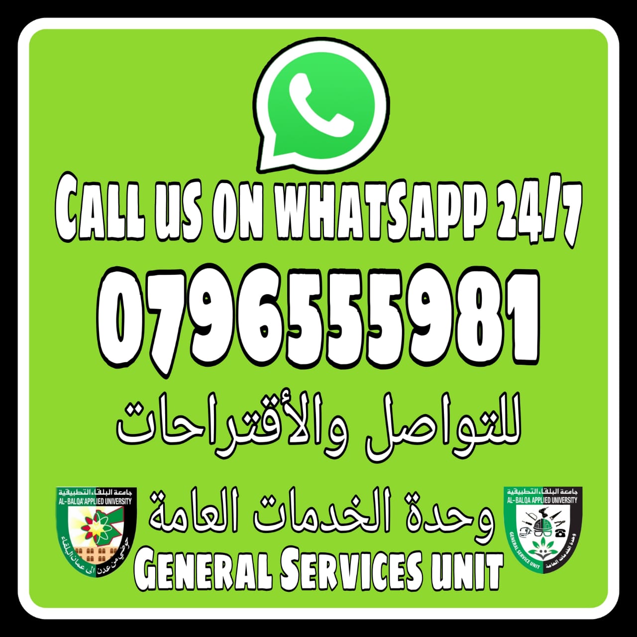 بتوجيهات من عطوفة رئيس الجامعة الاستاذ الدكتور عبدالله سرور الزعبي ،أطلقت وحدة الخدمات العامة في جامعة البلقاء التطبيقية ملصق ( ستكر ) يحمل عنوان " للتواصل والاقتراحات"، والذي يسهم من خلاله سهولة التواصل مع وحدة الخدمات العامة بالاضافة الى الاقتراحات المقدمة والذي سيوضع في الاماكن المخصصة لة وعلى مركبات الجامعة ايضا وعلى مدار 7 ايام بواقع 24 ساعة لكل يوم .