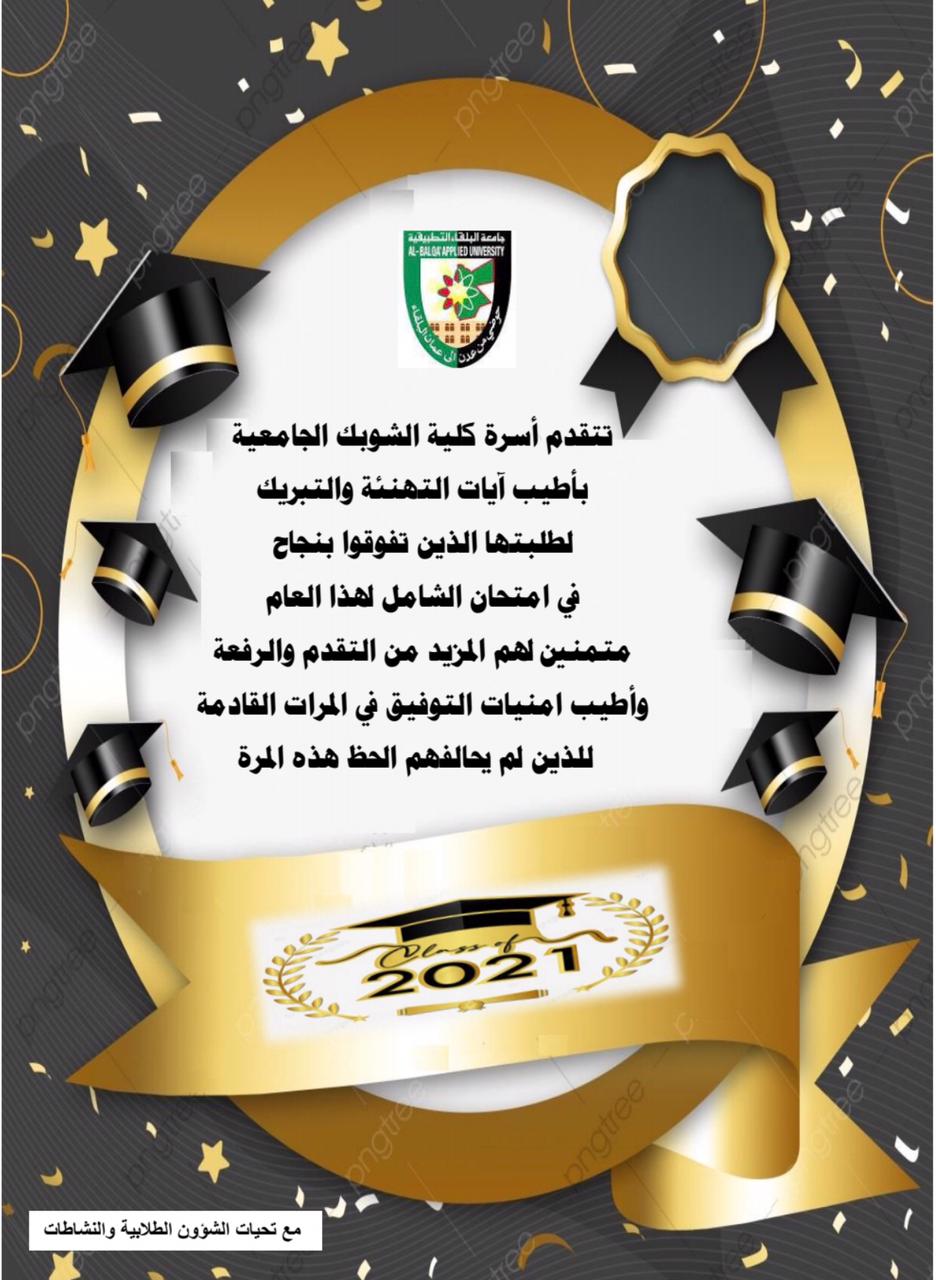 تهنئة لطلاب كلية الشوبك الجامعية الناجحين في امتحان الشامل