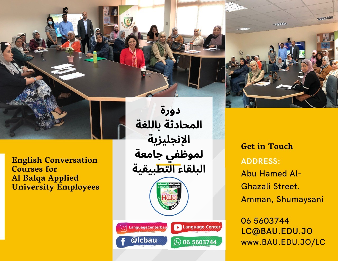 توجيها من الأستاذ الدكتور نضال يونس نائب الرئيس لشؤون المراكز، رعى الدكتور ناجي القبيلات مدير مركز اللغات فعاليات اختتام دورة المحادثة باللغة الإنجليزية التي عقدت في مركز اللغات لموظفي جامعة البلقاء التطبيقية.