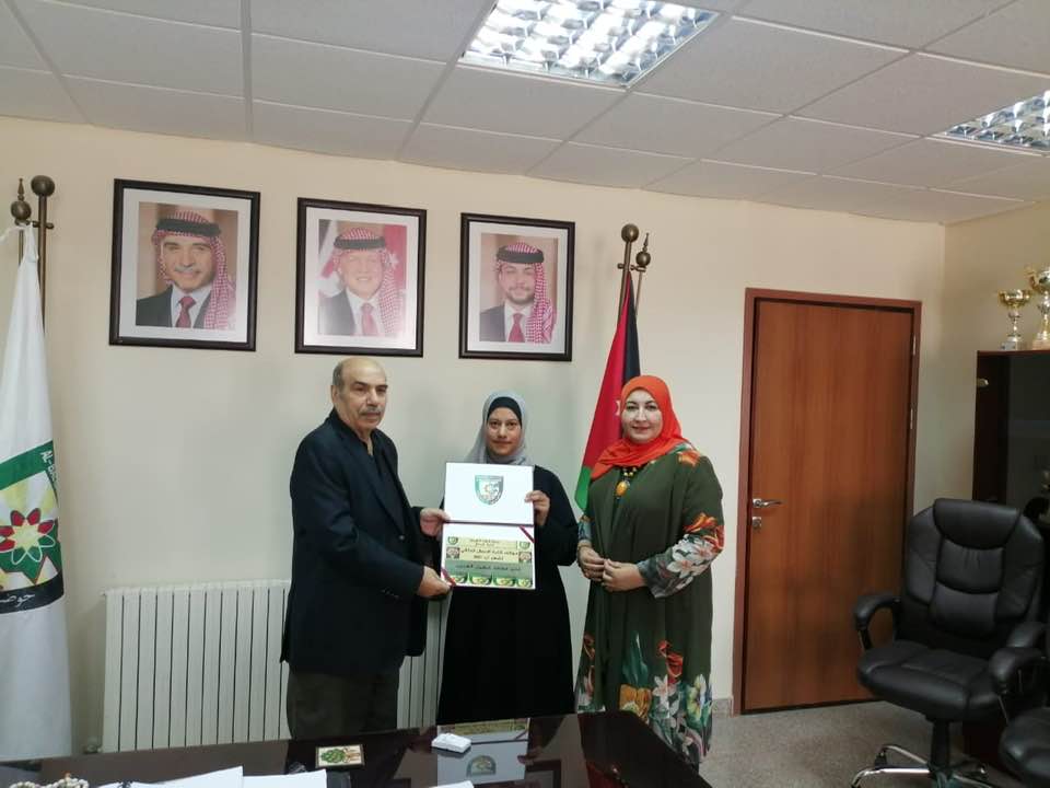 قام الاستاذ الدكتور سليمان اللوزي عميد كلية الاعمال ونائبه الدكتورة عبير الفاعوري وبحضور الكادر الاداري للكلية بتسليم شهادة الموظف المثالي عن شهر اب للزميلة غدير ابو هديب ويذكر بأن الزميلة غدير تشغل منصب سكرتيرة قسم المحاسبة.