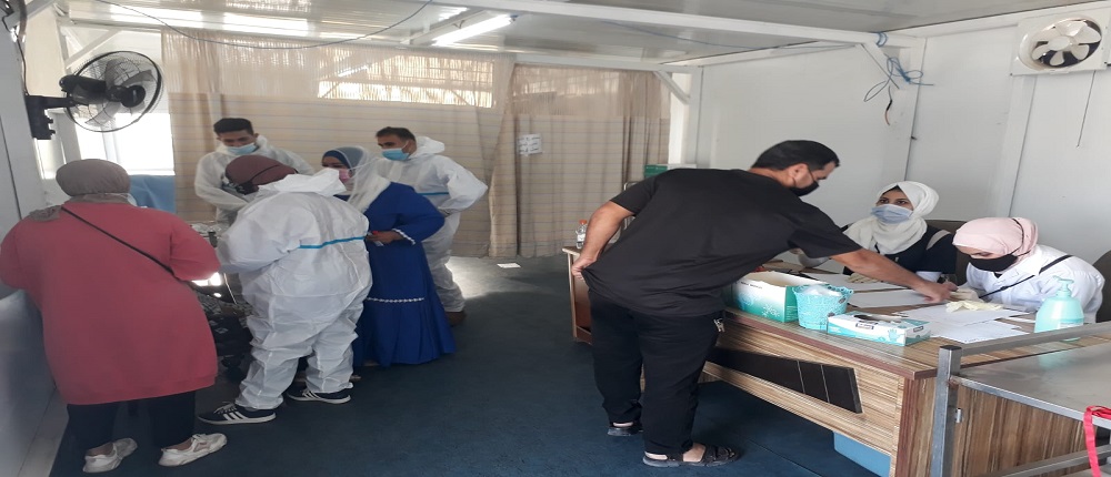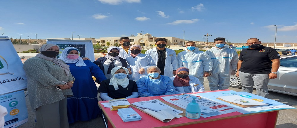 حيث أقيم العديد من الفعاليات في مستشفى الزرقاء الحكومي الجديد وقام مجموعة طلبة الكلية بتوزيع العديد من النشرات التوعوية حول طرق الوقاية من فايروس كورونا وعن أهمية تلقي المطعوم بالاضافة الى مساهمتهم في تنظيم المراجعين واجراء مسوحات PCR لفحص الكورونا.