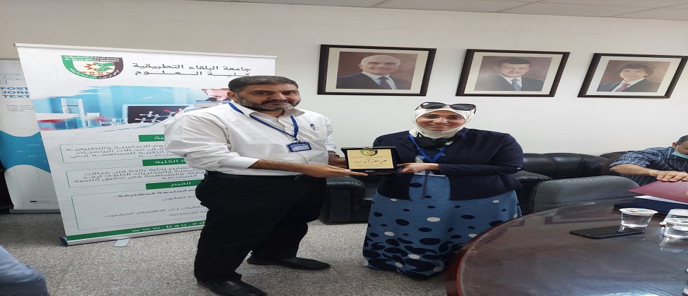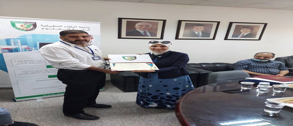 انسجامًا مع توجهات إدارة الجامعة في تحسين الأداء والتطوير وتحفيز قيم التنافس البناء في العمل لدى الموظفين سلمت عميدة كلية العلوم الاستاذ الدكتورة هاله الجبر شهادة الموظف المثالي (شهادة تقديرية) عن شهر اب /2021 للموظف علي خضر ابوزيد / مساعد العميد للشؤون الادارية))