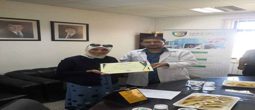 انسجامًا مع توجهات إدارة الجامعة في تحسين الأداء والتطوير وتحفيز قيم التنافس البناء في العمل لدى الموظفين سلمت عميدة كلية العلوم الاستاذ الدكتورة هاله الجبر شهادة الموظف المثالي (شهادة تقديرية) عن شهر ايلول /2021 للموظف بركات محمد خير مناصرة))