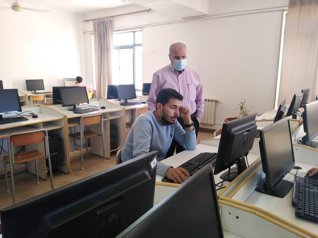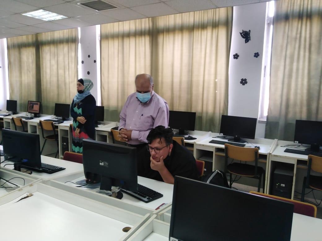وتجول عميد الكلية في قاعات الإمتحانات والتي عقد فيها إمتحانات المستوى للغة العربية، والإنجليزية، والحاسوب، والتي جرت في مختبرات الكلية مشددا خلال الجولة على ضرورة أن تجري الإمتحانات في أجواء مريحة للطلبة، وتذليل كافة الصعوبات والتي من الممكن أن تواجههم خلال تقديمها. كما شدد في جولته على ضرورة الإلتزام بقواعد السلامة العامة، من إرتداء للكمامات ووضع للمطهرات قبل وبعد تقديم الإمتحانات، وذلك حرصاً على سلامة الطلبة ومرتادي الكلية.