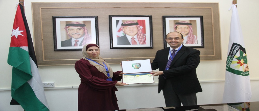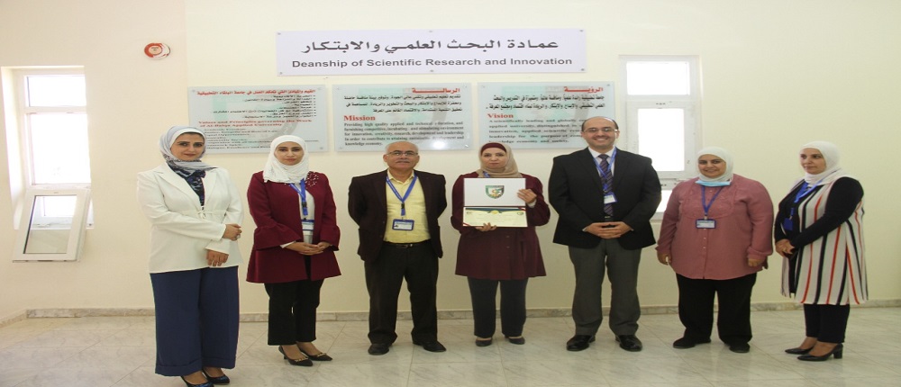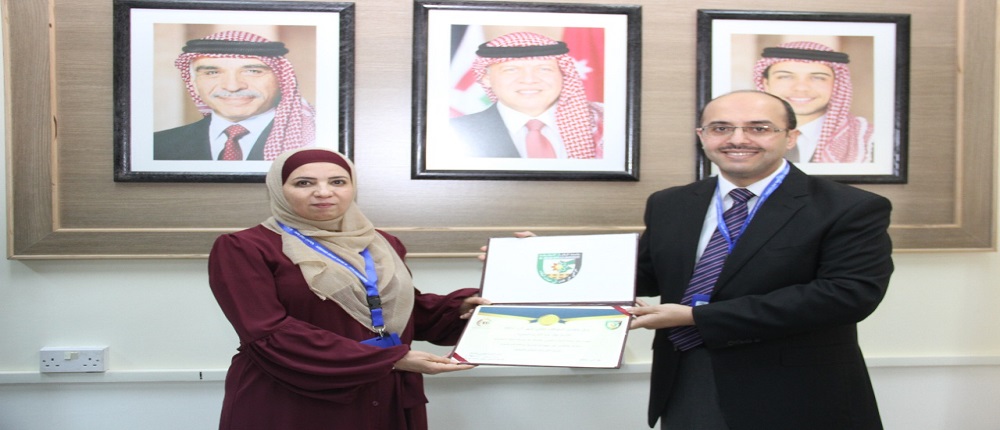 انسجامًا مع توجهات إدارة الجامعة ممثلة برئيسها الأستاذ الدكتور عبدالله سرور الزعبي في تحسين الأداء والتطوير وتحفيز قيم التنافس البناء في العمل لدى الموظفين سلم عميد البحث العلمي والابتكار الأستاذ الدكتور سعيد ابو رمان شهادة الموظف المثالي عن شهر اب 2021 للموظفة نوال العمايره، بحضور نائب عميد البحث العلمي والابتكار وأسرة العمادة.