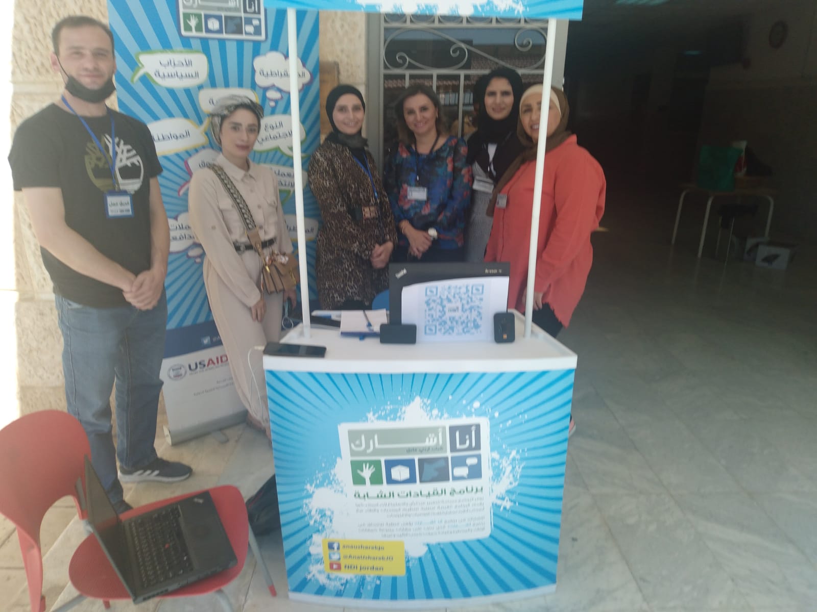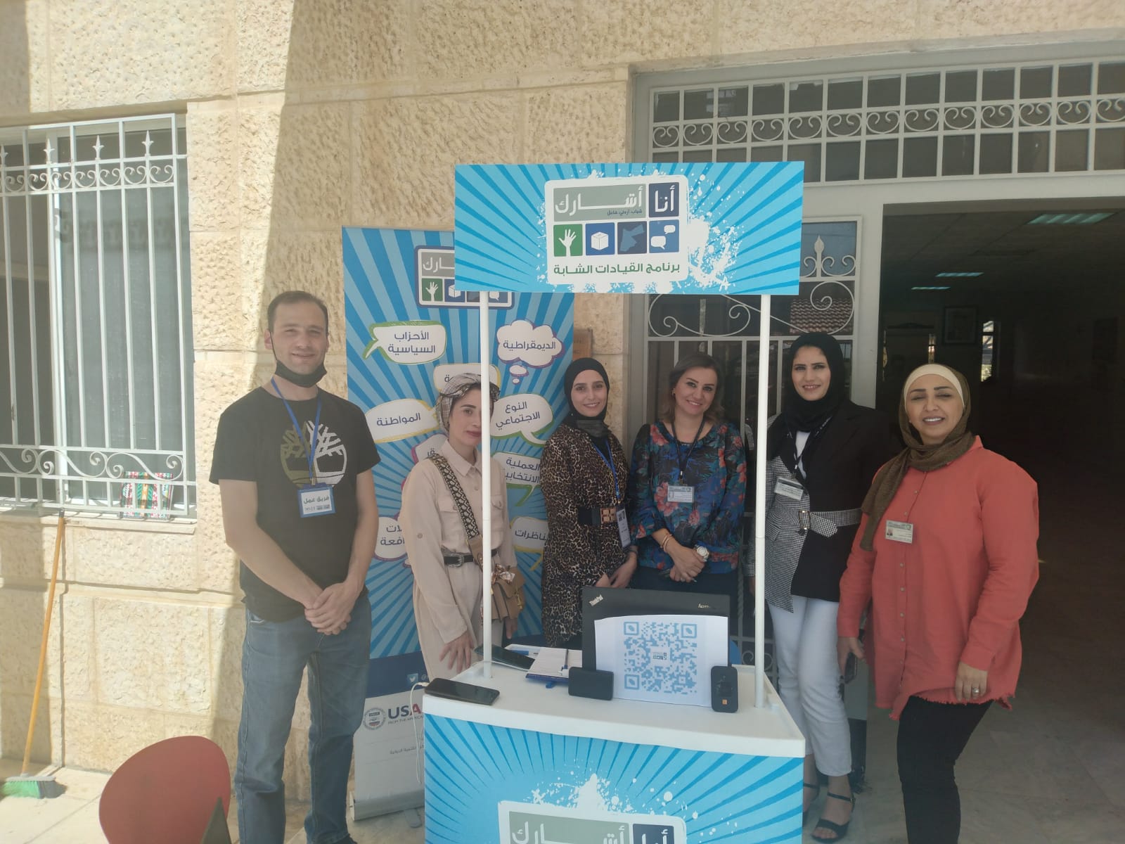 ويهدف برنامج "أنا أشارك" إلى بناء معارف وقدرات ومهارات الطلبة في مجال العمل الديمقراطي وصناعة القرار حيث ينخرط المشاركون في جلسات حوارية .