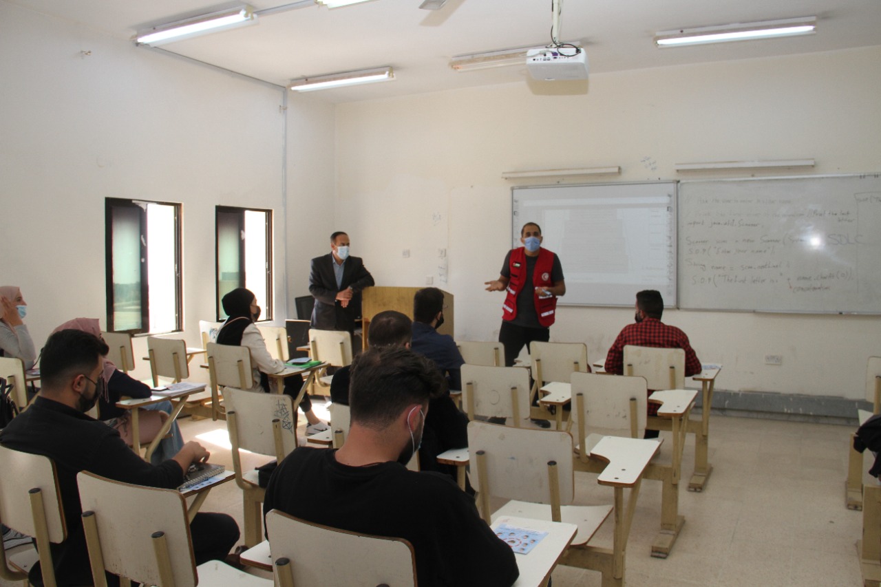 الدكتور خالد العطيات وخلال لقائه الطلبة في الجامعة أشار الى كافة الإجراءات التي اتخذتها إدارة الجامعة منذ بدء الجائحة وحتى عودة الطلبة إلى التعليم الوجاهي، داعيا الطلبة إلى ضرورة اخذ المطاعيم التي توفرها وزارة الصحة لمواجهة َهذا الفيروس والحد من انتشاره.