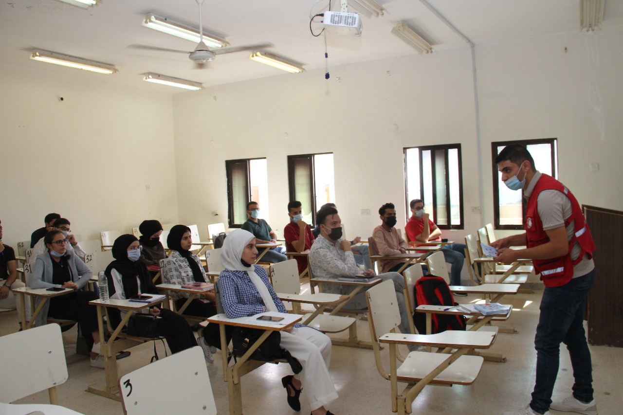 وقد شارك بالحملة فريق من متطوعي الجمعية فرع البلقاء ضمن مشروع ( rcce) ( الابلاغ عن المخاطر والمشاركة المجتمعية ) من خلال المشاركة بتوزيع بروشرات توعوية على الطلبة في القاعات التدريسية والمتضمنة التعريف بفايروس كورونا وطرق والإجراءات الوقائية الواجب اتخاذها اضافة الى حث الطلبة على اخذ المطعوم.