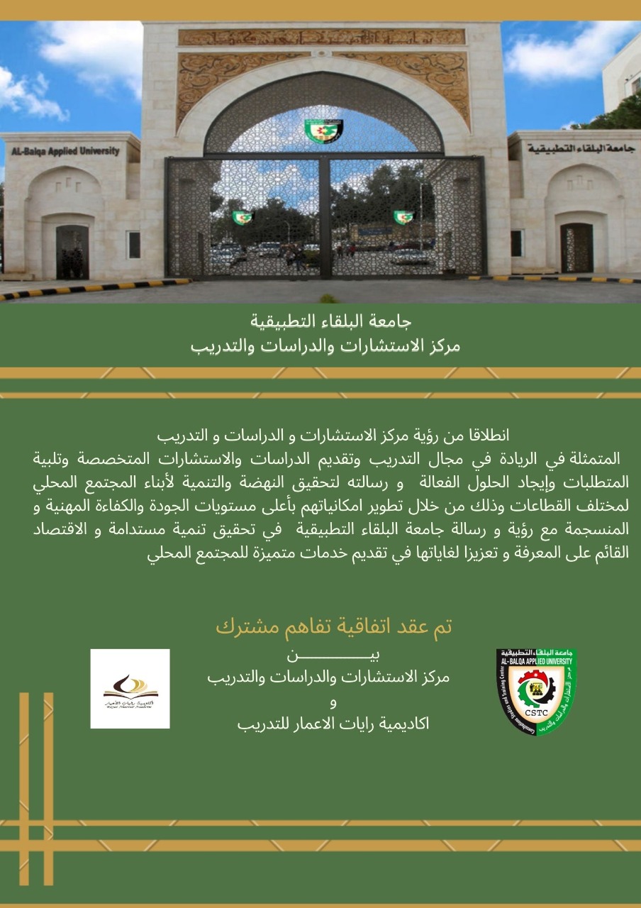 عقد اتفاقية تفاهم مشتركة بين مركز الاستشارات والدراسات والتدريب وأكاديمية رايات الاعمار لتدريب