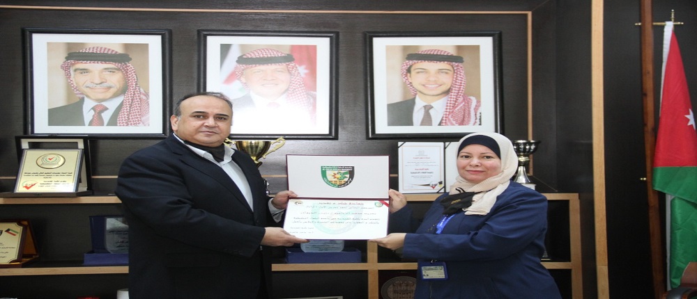 انطلاقا من رؤية جامعة البلقاء ممثلة برئيسها الأستاذ الدكتور عبدالله سرور الزعبي في تحسين الأداء والتطوير وتحفيز قيم التنافس البناء في العمل لدى الموظفين سلم عميد كلية الهندسة الأستاذ الدكتور ماهر قاقيش شهادة الموظف المثالي عن شهر تشرين اول 2021 لرئيس الديوان الموظفة تغريد الرحامنة وأكد الدكتور قاقيش ان هذا التكريم يعد حافزا لكافة العاملين في الكلية من اجل بذل المزيد من العطاء المميز وخلق روح المنافسة بين الموظفين مقدما شكره لجميع العاملين وحثهم للعمل بروح الفريق الواحد .