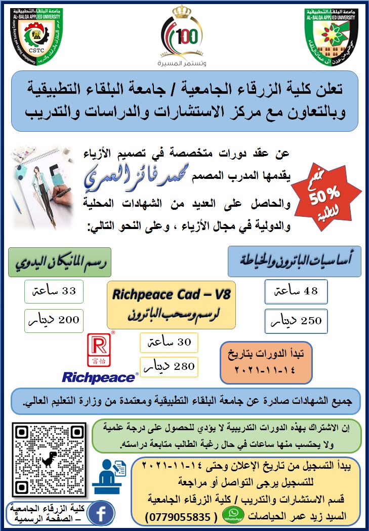 اعلان عن عقد دورات تدريبية في مجال تصميم الأزياء