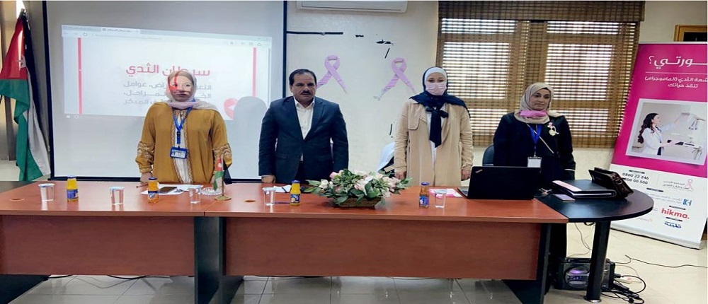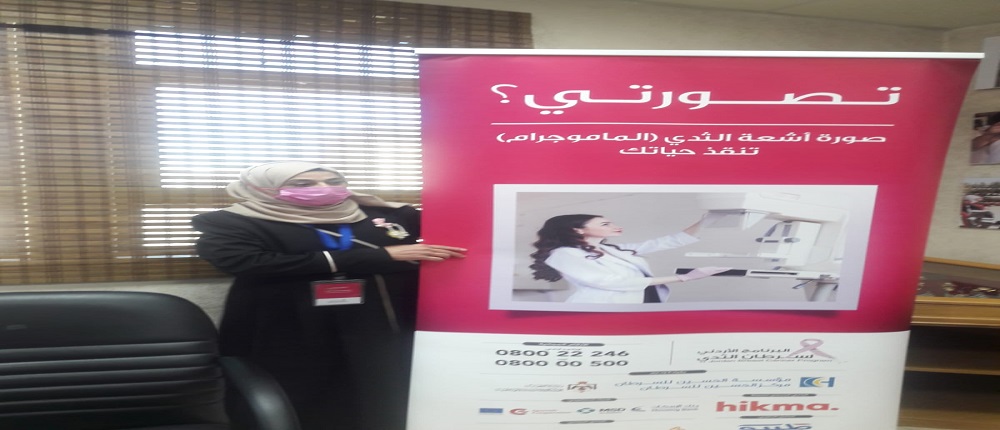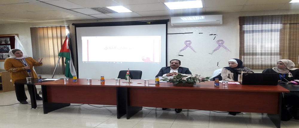 وقامت  المثقفة صحيًا من مؤسسة الحسين للسرطان السيدة عالية خير بإطلاع الحضور على البرنامج الأردني لسرطان الثدي كونه برنامجًا وطنيًا تم تأسيسه عام 2007 بقيادة ودعم مؤسسة ومركز الحسين للسرطان ووزارة الصحة ،يهدف إلى خفض معدلات الوفيات الناجمة عن سرطان الثدي بالانتقال من مراحله المتأخرة (الثالثة والرابعة) الى مراحله المبكرة (من الصفر إلى المرحلة الثانية) حيث تكون فرص الشفاء أعلى وتكاليف العلاج أقل ،وأضافت أن عمل البرنامج يتضمن ثلاث محاور أساسية تم تصميمها لسد الفجوات المتعلقة بخدمات الكشف المبكر على المستوى الوطني