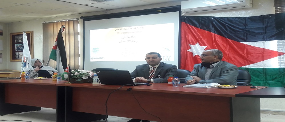 حيث بدأت المحاضرة بالسلام الملكي وآيات من الذكر الحكيم تلاه كلمة لنائب عميد الكلية الأستاذ الدكتور عماد الضمورمندوبًا عن عميد الكلية الأستاذ الدكتور ناجي السعايدة أعرب فيها عن أهمية برنامج ريادة الأعمال في تفعيل أداء الطالبات وضرورة اعتمادهن على ذواتهن لايجاد فرص عمل وتغيير نمطيّة التفكير في الحصول على الوظيفة القائمة سابقًا على الترتيب التنافس للقوائم التي يصدرها ديوان الخدمة المدنية لطالبي الوظيفة الحكومية في ظل تزايد أعداد الخريجيين ومحدودية الوظائف وهذا يتطلب البحث عن مشاريع ريادية ذات إنتاجة عالية تركز على النوع أكثر من تركيزها على الكم .