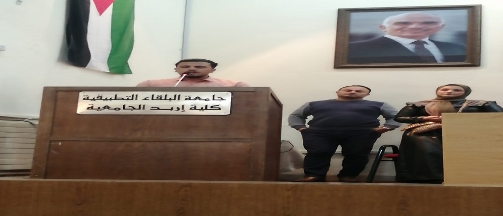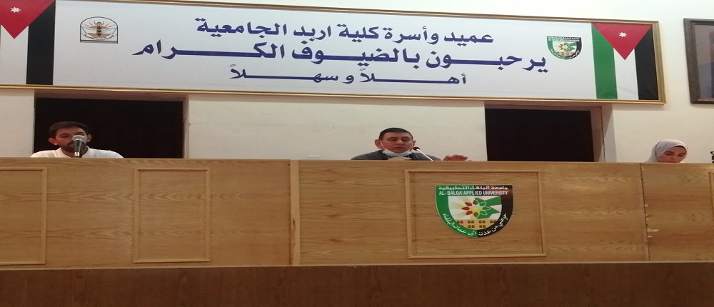 وسط حضور طلابي من طلبة كلية اربد الجامعية /جامعة البلقاء التطبيقية احتفلت الكلية باشهار كتابين،  الأول للطالب إيهاب القواسمه تحت عنوان" هنا أنت" والثاني للطالبة روان الرياحنة بعنوان "لا يليق الا بك" وذلك على مسرح الكلية ، بحضور مساعد العميد للشؤون الطلابية الدكتور عمر جرادات وعدد من أعضاء الهيئتين التدريسية والإدارية والطلبة .