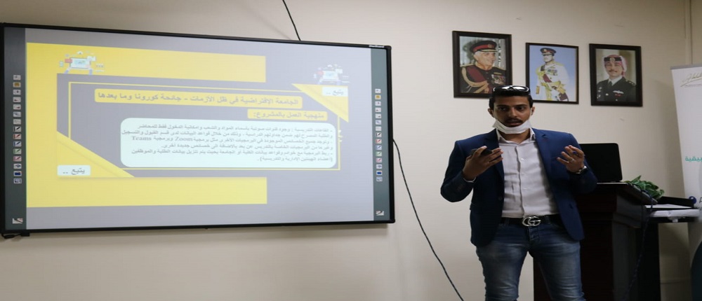 بتوجيهات من الاستاذ الدكتور عبدالله سرور الزعبي رئيس جامعة البلقاء التطبيقية وبمتابعة من الاستاذ الدكتور خليل الحياري عميد كلية عمان الجامعية تم يوم الخميس الموافق 2021/11/11 زياره لمكتب صندوق الملك عبدالله الثاني للتنمية في الجامعة الأردنية للمشاركة في مشاريع دعم البحث والإبداع لطلبة الجامعات حيث تم عرض ومناقشة مشروع (الجامعة الافتراضية في ظل الازمات) الخاص بالطالبين جلال المناصير ومحمد الحمايده تحت إشراف الدكتور سليمان وشاح مساعد العميد للشؤون الطلابية