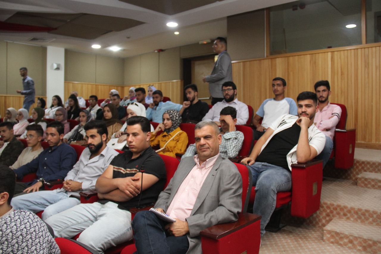 كما اشار الدكتور النعيمات الى اننا نسعى ومن خلال هذه اللقاءات مع الطلبة الى الاستماع لأهم التحديات والمشاكل التي قد تواجههم وخاصة في السنة الدراسية الأولى والتحاور معهم ومع زملائهم من الطلبة القدامى منوه الى التوجه لتكثيف اللقاءات الدورية وورش العمل لنبقى على تواصل دائم مع الطلبة على مدار العام الجامعي .
